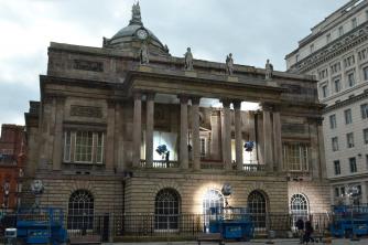 Film lights on the Town Hall, Liverpool for the filming of Tolkien